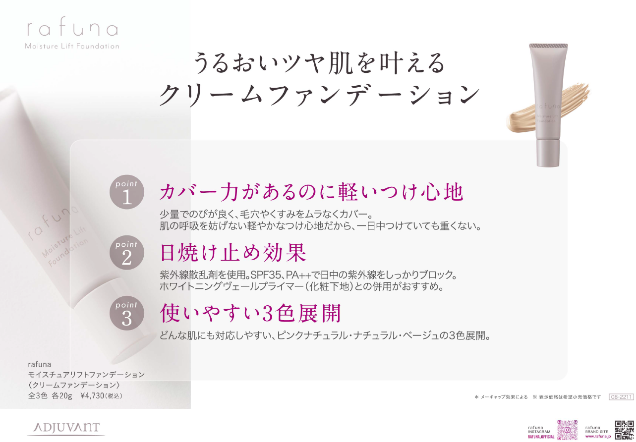 季節に左右されない“通年ケア”として、オススメUVアイテム「rafuna」シリーズ2品のサッシェを同梱いたします。
